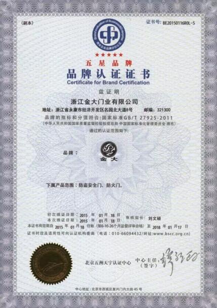 金大门业顺利通过五星品牌和服务认证复审