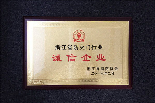金大门业荣获浙江省防火门行业“诚信企业”荣誉称号