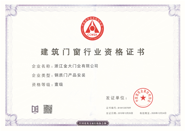 日前,金大门业顺利通过资质审核,获得建筑钢质门行业制造企业一级资质、安装企业一级资质。据悉,金大门业也是国内首批取得建筑门窗企业双一级资质的企业。这也是金大门业获得金大门业总经理崔英杰先生被评为201...查看详情 -